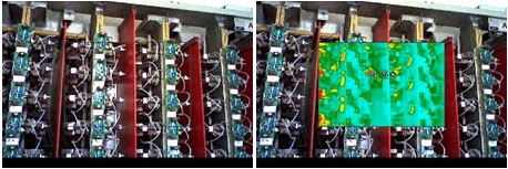 2 一個(gè)整流柜內(nèi)的整流器一般有幾十個(gè)甚至更多,使用紅外點(diǎn)溫儀檢測(cè)需要花費(fèi)眾多的人力資源;紅外熱像儀可以在一幅熱圖中包含大量的整流器熱信息,大大提高工作效率。