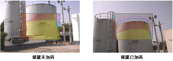 儲(chǔ)罐雖然有液位計(jì)對(duì)液位進(jìn)行控制,但液位計(jì)的失靈會(huì)導(dǎo)致空罐和滿罐,使生產(chǎn)突然中斷或造成儲(chǔ)罐溢出事故,造成巨大損失;紅外熱像儀可以直接在外表面拍攝出液位線,幫助設(shè)備維護(hù)人員及時(shí)發(fā)現(xiàn)有故障的液位計(jì),或者對(duì)存儲(chǔ)容量有明顯偏差的罐體進(jìn)行深入檢測(cè),避免潛在的危險(xiǎn)。
