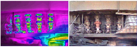 高爐風口是向高爐送風的裝置,因其承受高溫(1000 攝氏度)、腐蝕、熱疲勞、磨粒沖蝕(風速150 米/分且含煤粉)等惡劣環(huán)境,因此使用壽命較短。紅外熱像儀可以快速、安全的檢測其故障,為設備的維護和長久運行打下堅實的基礎。